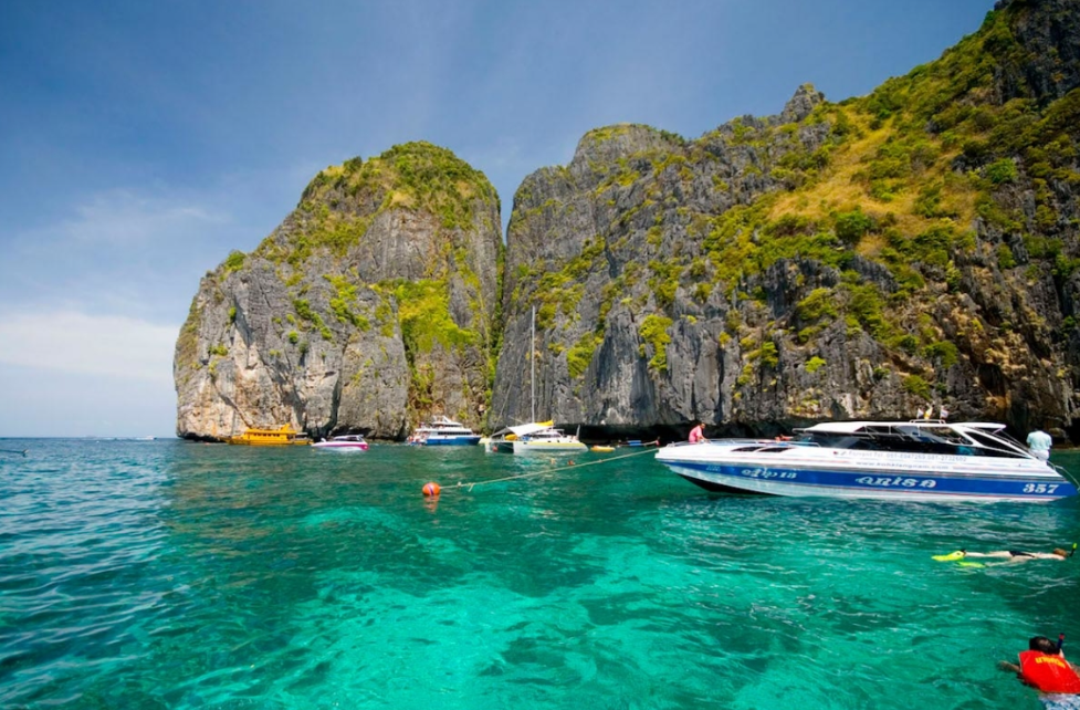 Я путешествую по острову из одного места в другое на скоростном катере. Когда вы достигли острова Пхи-Пхи, это было похоже на попадание в другой райский мир с кристально чистой сине-зеленой морской водой. Вид потрясающий.